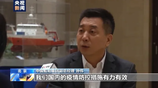 中国船舶集团副总经理 孙伟:其中重要的一条,就是我们国内疫情防控措施有力有效,坚定了船东对中国企业的信心,我们的研发人员主动作为、创新工作,确保了在疫情下和客户的沟通交流各个环节的畅通、高效。