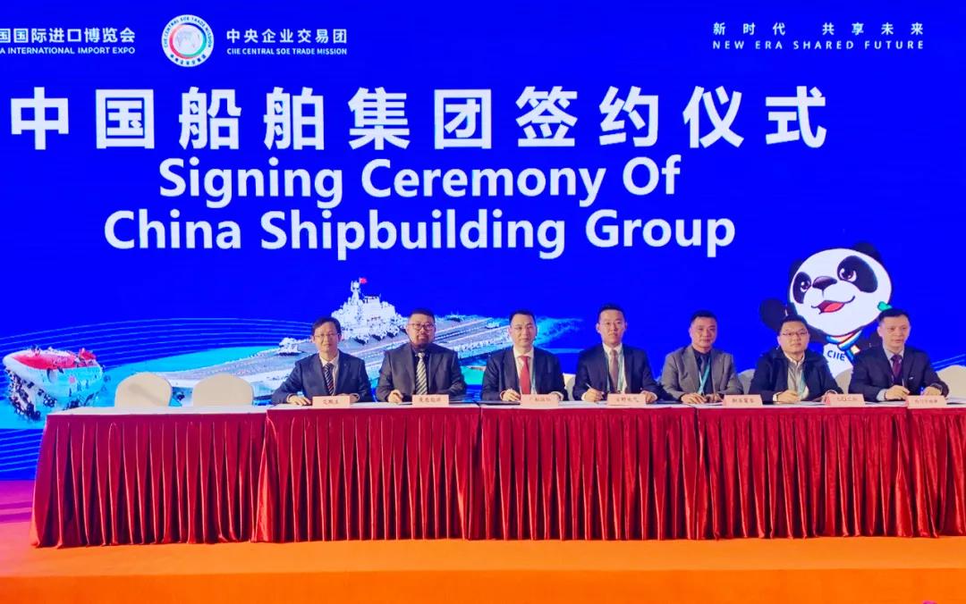 11月5日下午,中国船舶集团举行第四届进博会国资委中央企业交易团集中签约仪式。中国船舶集团旗下7家企业与26 家合作商进行了31个项目签约,签约总金额累计达14 亿人民币,较上届同比增加92.1%。这是中国船舶集团在国务院国资委领导下,深入贯彻和落实习近平总书记关于中国国际进口博览会“不仅要年年办下去,而且要办出水平、办出成效、越办越好”的重要指示精神,积极履行央企责任的重要体现,也是全力构建贸易自由化、经济全球化产业链和供应链新格局的具体实践。中国船舶集团党组成员、副总经理盛纪纲出席并致辞。