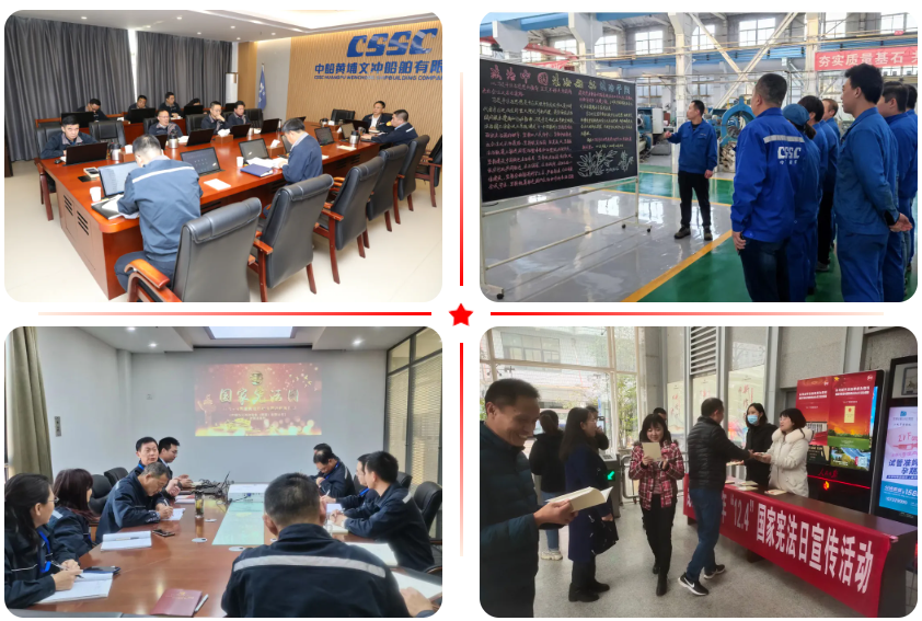 今年12月4日是第八个国家宪法日,11月29日~12月5日是第四个“宪法宣传周”。中国船舶集团总部和各成员单位以本次国家宪法日和“宪法宣传周”为契机,深入开展了2021年“法治宣传周”活动,在集团上下掀起了尊法学法守法用法的热潮,营造了浓厚的法治氛围。