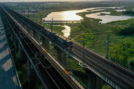 ▲重载列车行驶在大秦铁路上(2022年7月16日摄,无人机照片)。新华社记者 曹阳 摄