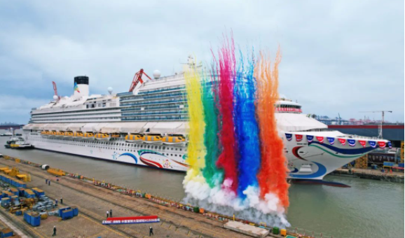 今天,我国首艘国产大型邮轮“爱达·魔都号”在中国船舶集团外高桥造船顺利出坞。