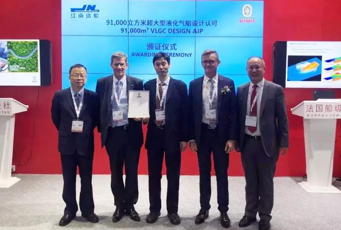 ????海事展首日,中国船舶集团所属江南造船(集团)有限责任公司新开发的技术“SFONE”获美国船级社AiP证书,新一代VLGC-PANDA 91T获得法国船级社的AiP证书。 SFONE(额外的1%装载率)是一项针对液化气船装载的特殊技术。江南已经获得了中国国家专利局颁发的发明专利证书。新一代VLGC-PANDA 91T在之前已经获得了ABS和LR的AiP证书,PANDA 91T目前也已获得三家著名船级社的AiP证书。