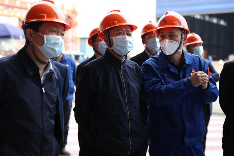 ????王江平一行深入车间实地考察了重点在制产品生产情况,认真听取了武船集团积极参与疫情防控、有序推进复工复产和疫情影响等方面的情况汇报。