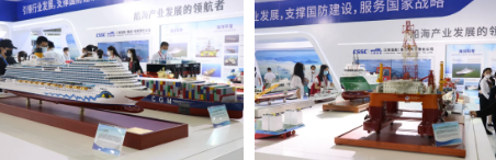 在运输船舶区域,一共展示了大型邮轮、油船、散货船、集装箱船和特种船舶等五大类型船舶,代表着世界造船行业最先进水平的明星船舶产品,充分显示出自主创新是中国船舶工业高质量发展的关键所在。