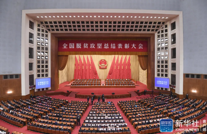 2月25日上午,全国脱贫攻坚总结表彰大会在北京人民大会堂隆重举行。中共中央总书记、国家主席、中央军委主席习近平向全国脱贫攻坚楷模荣誉称号获得者颁奖并发表重要讲话。大会还对全国脱贫攻坚先进个人、先进集体进行表彰。