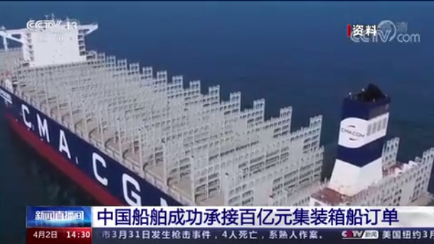3月31日,中国船舶集团有限公司旗下中国船舶工业贸易有限公司携手大连船舶重工集团有限公司和广船国际有限公司成功承接13艘16000TEU集装箱船订单,总金额超百亿元人民币。该笔订单即时生效,是中国船舶集团承接的单笔金额最大的集装箱船订单,标志着中国船舶集团重组整合后在民船市场开拓和产品转型升级方面取得了重大成果,为中国船舶集团一季度船海业务经营工作画上了圆满句号。