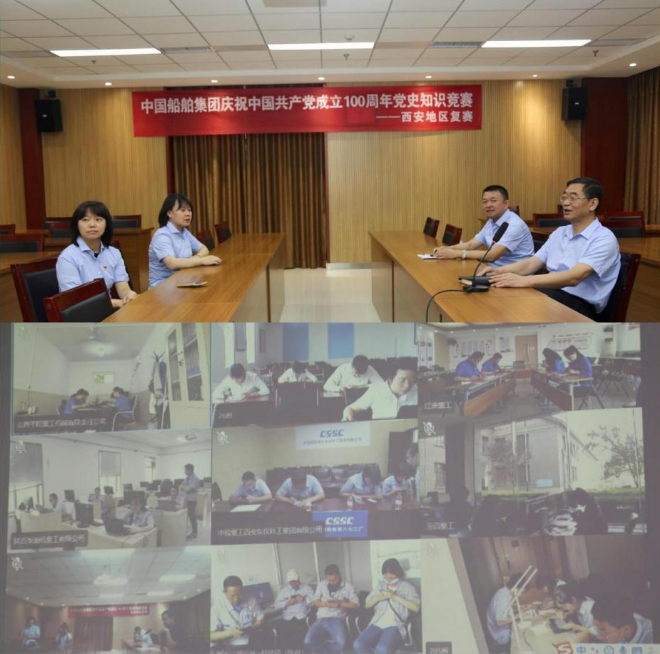 为庆祝中国共产党成立100周年,扎实推动党史学习教育,由中国船舶集团主办、集团公司党群工作部指导、中国船舶集团党校承办的党史知识竞赛自4月中旬起在集团公司内全面开展。各地区、各成员单位按要求进行了党史知识竞赛筹备以及地区遴选和复赛工作。5月27~31日,集团公司党史知识竞赛8个赛区分别组织来自总部和100家成员单位的407名选手,登录集团公司党校“中船e学”平台,通过集中在线测试完成了复赛。一起来看看精彩瞬间 ——