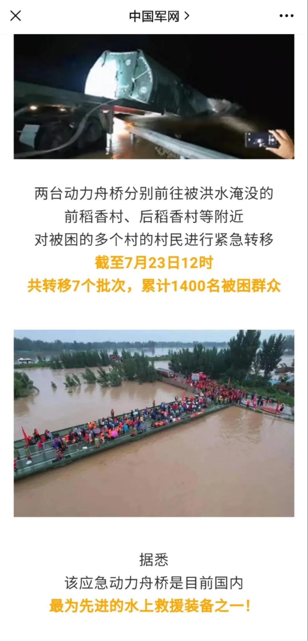 在这次执行河南抗洪抢险任务之前,动力舟桥曾参与过安徽池州溃口封堵、松花江特大洪水、鄱阳湖洪涝等多次灾害救援,可以说是战功累累。
