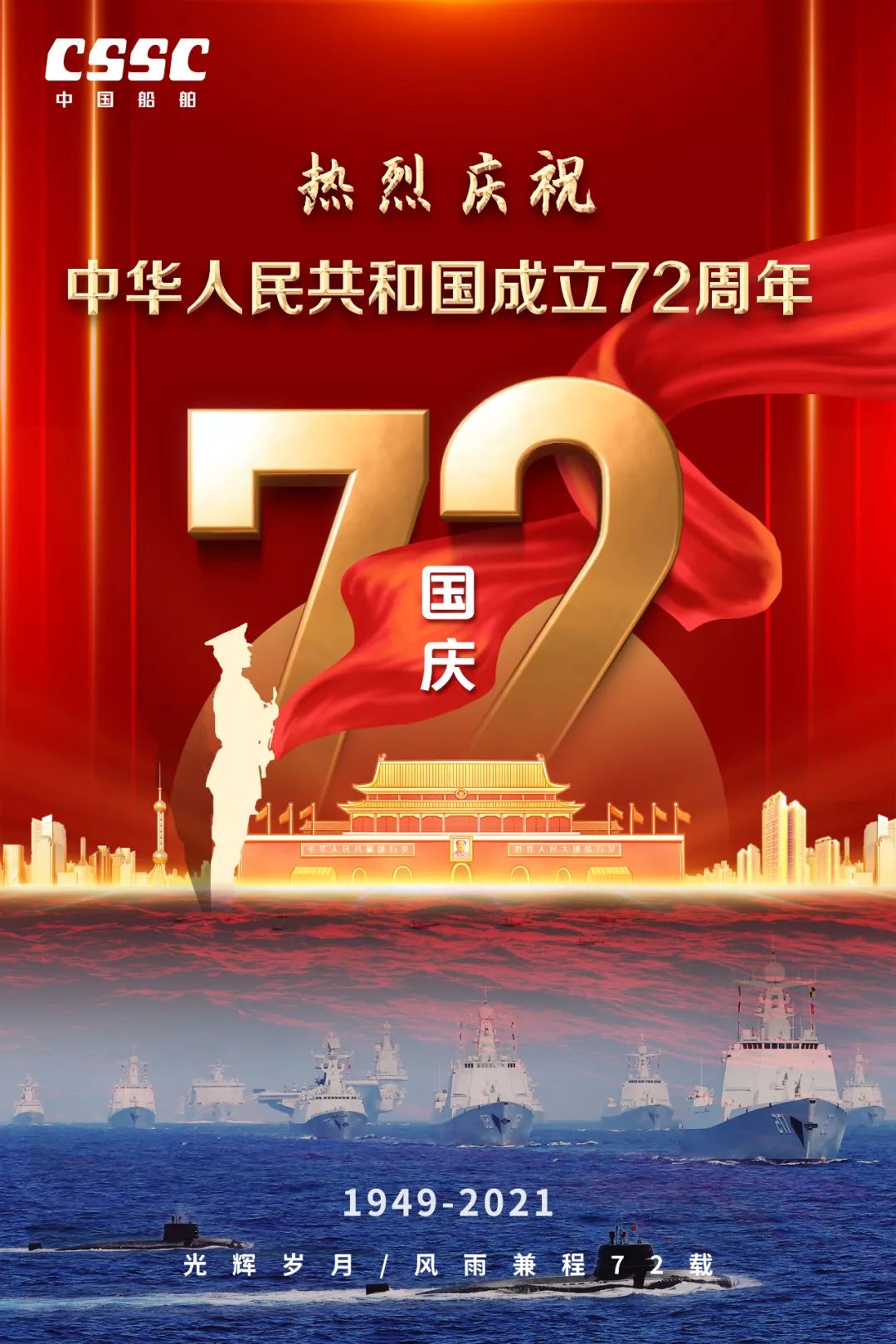 今天,我们迎来新中国72周年华诞。作为我国海军装备建设的主力军,中国船舶大船集团将不忘初心,牢记使命,坚定贯彻海洋强国、制造强国、科技强国国家战略,聚焦主责主业、聚力兴装强军,为实现中华民族伟大复兴的中国梦而不懈奋斗。