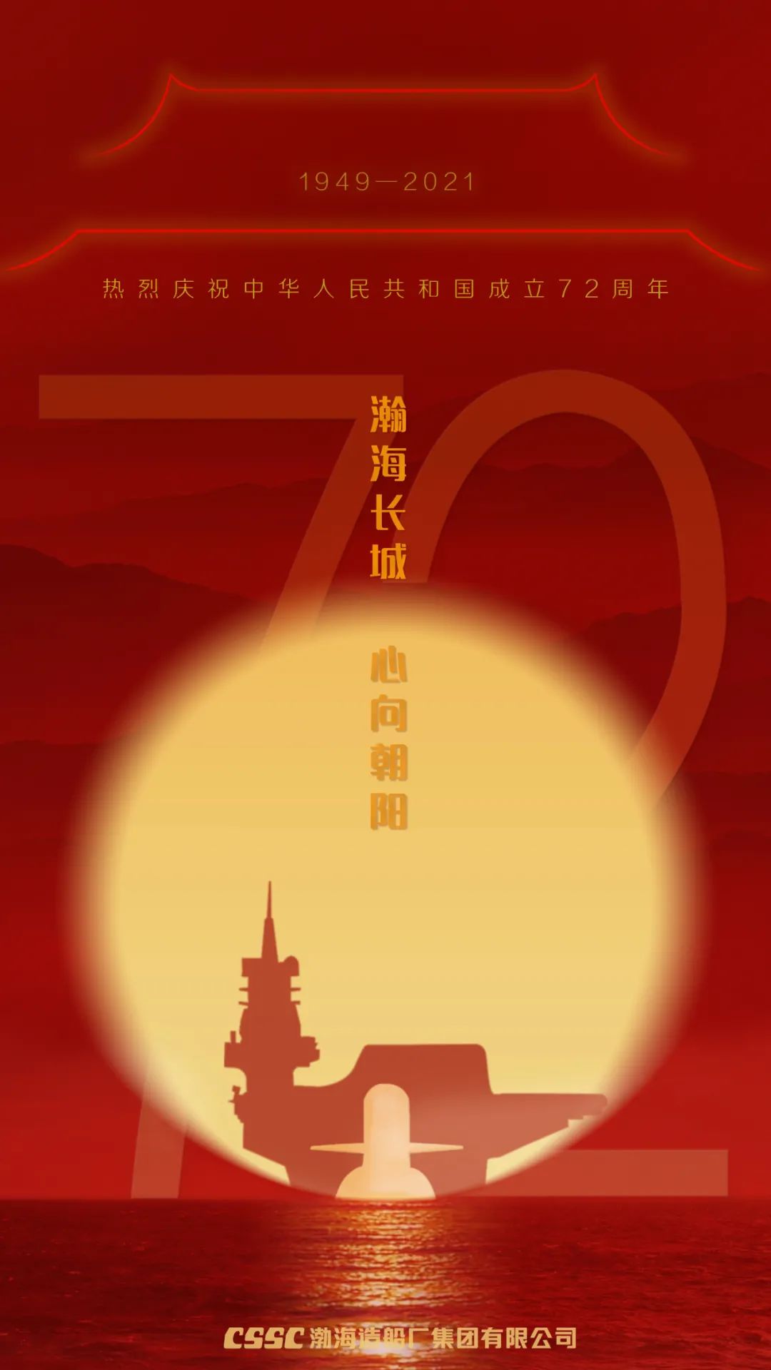 一轮红日从国之沧海升起,捍卫万里海疆的海上长城深海逐浪,其后盾是强大的祖国母亲,中国船舶渤船集团祝新中国七十二岁生日快乐!强军有我,强国有我!