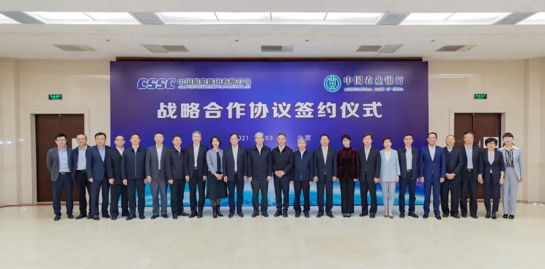 中国船舶集团、农业银行总部有关部门和相关成员单位负责人参加签约仪式。