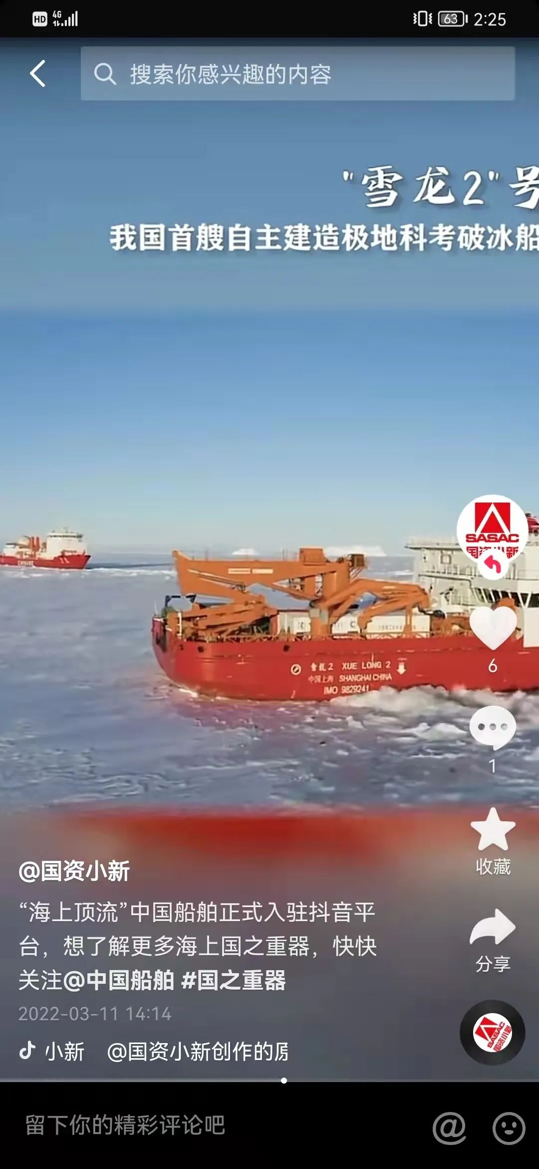 3月11日,中国船舶官方抖音号正式开通