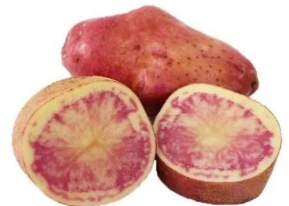 花心土豆又名七彩土豆,种植条件必须在温度、湿度、光照度达到其种植要求,花青素才会沉淀呈放射状,2004年获国家农业部无公害农产品认证,2006年经中国绿色食品发展中心认定为“绿色食品A级”产品。七彩土豆具有较高的观赏价值和食用价值。煮熟后,不褪色不变形,富含人体所需的多种微量元素,含钙丰富并容易被人体吸收,对瘦身健体效果明显,属于无污染、无公害的绿色食品。
