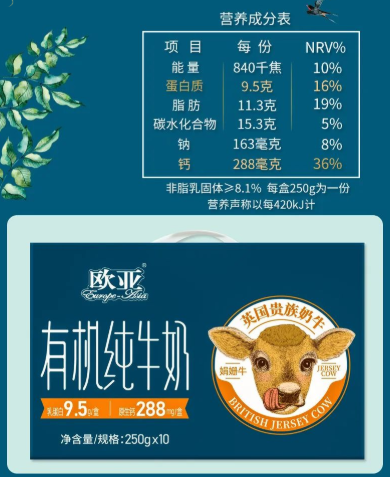 欧亚牧场位于鹤庆县金墩乡北溪村,牧场占地420亩,种植用地1800亩,奶牛存栏5000头,是“绿色食品牌”州级产业基地。欧亚乳业是云南省绿色食品“10强企业”,“欧亚”商标是“中国驰名商标”,产品被评为“云南名牌产品”。新研发风花雪月系列牛奶、娟姗有机奶等,欧亚纯牛奶经典款距今已经19年,品质如一。