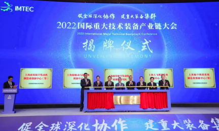 开幕式上,田玉龙、张为、盛纪纲、陈金山、上海市政府副秘书长庄木弟、中国商用飞机有限责任公司总经理赵越让、中国航发商发公司董事长李军与中航机载系统公司副总经理邓平煜共同为上海商用航空发动机产业创新研究院、上海船舶动力制造业创新中心、上海大飞机制造业创新中心(筹)、上海商用航空发动机制造业创新中心(筹)、上海航空机载系统制造业创新中心(筹)揭牌,旨在组建以“链长”为引领、大中小企业融通的产业创新研究院和制造业创新中心,进一步强化科技创新策源和高端产业引领功能,实施产业基础再造和提升产业链现代化水平。