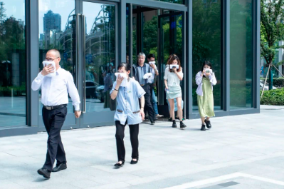 本次演练模拟总部1#楼电梯间、2#7层会议室发生火灾,物业人员先后用灭火器、楼层消防水系统实施初期火灾扑救,火势无法控制后立即拉响疏散警报,同时向最近的消防站请求支援。全体人员按照疏散路线紧急有序完成了疏散。