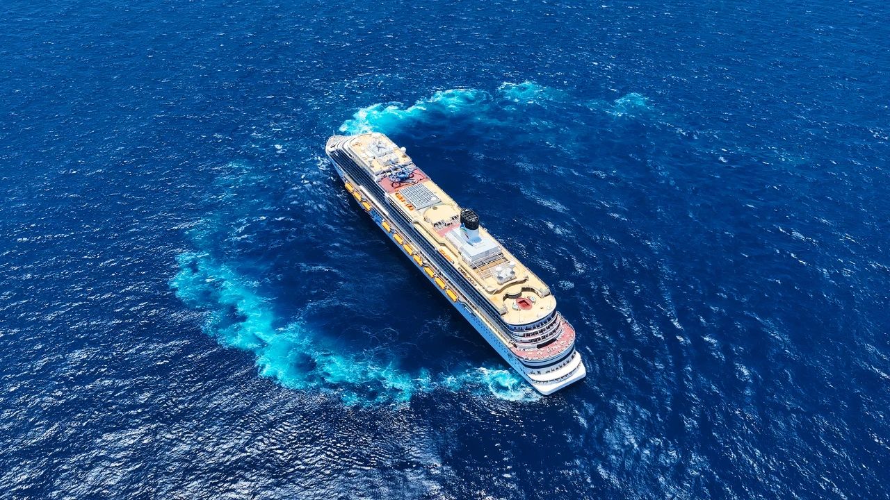 本幅照片拍摄于大型邮轮试航期间,用航拍记录下邮轮在海上航行的绝美瞬间。