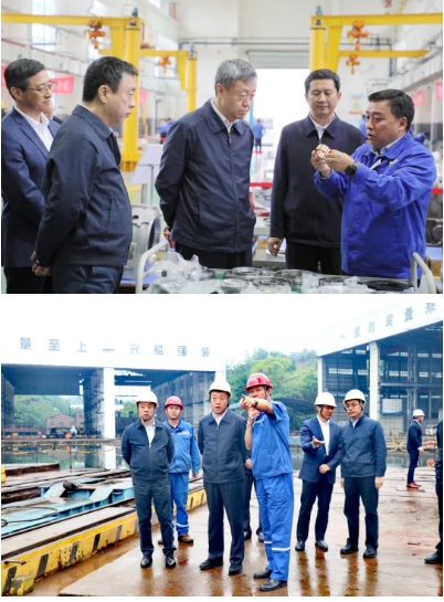 4月24-25日,中国船舶集团有限公司党组书记、董事长温刚前往中国船舶集团旗下重庆公司、川船重工、长征重工、前卫科技、重齿公司调研,强调要深入学习贯彻习近平新时代中国特色社会主义思想和党的二十大精神,围绕核心使命,突出价值创造,不断推动企业实现高质量发展。集团公司党组成员、副总经理盛纪纲参加调研。