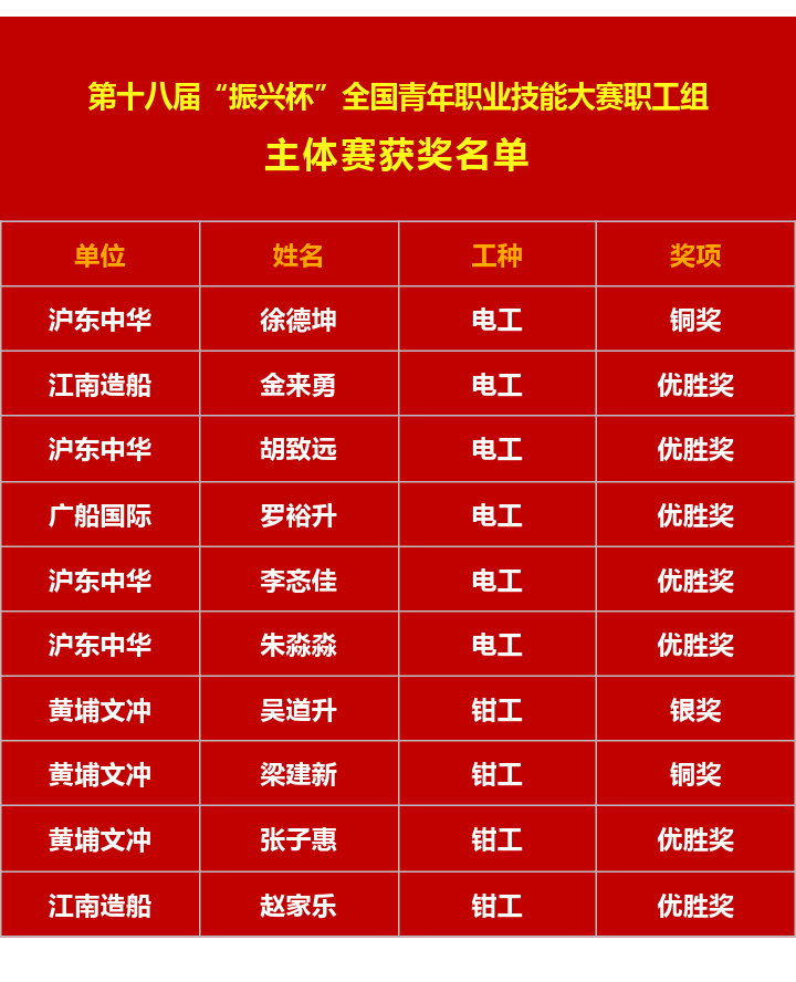 船舶青年在第十八届“振兴杯”全国青年职业技能大赛和创新创效竞赛中获佳绩
