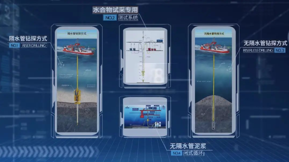 4种钻探模式(传统隔水管、传统无隔水管、轻型隔水管、无隔水管泥浆闭式循环)