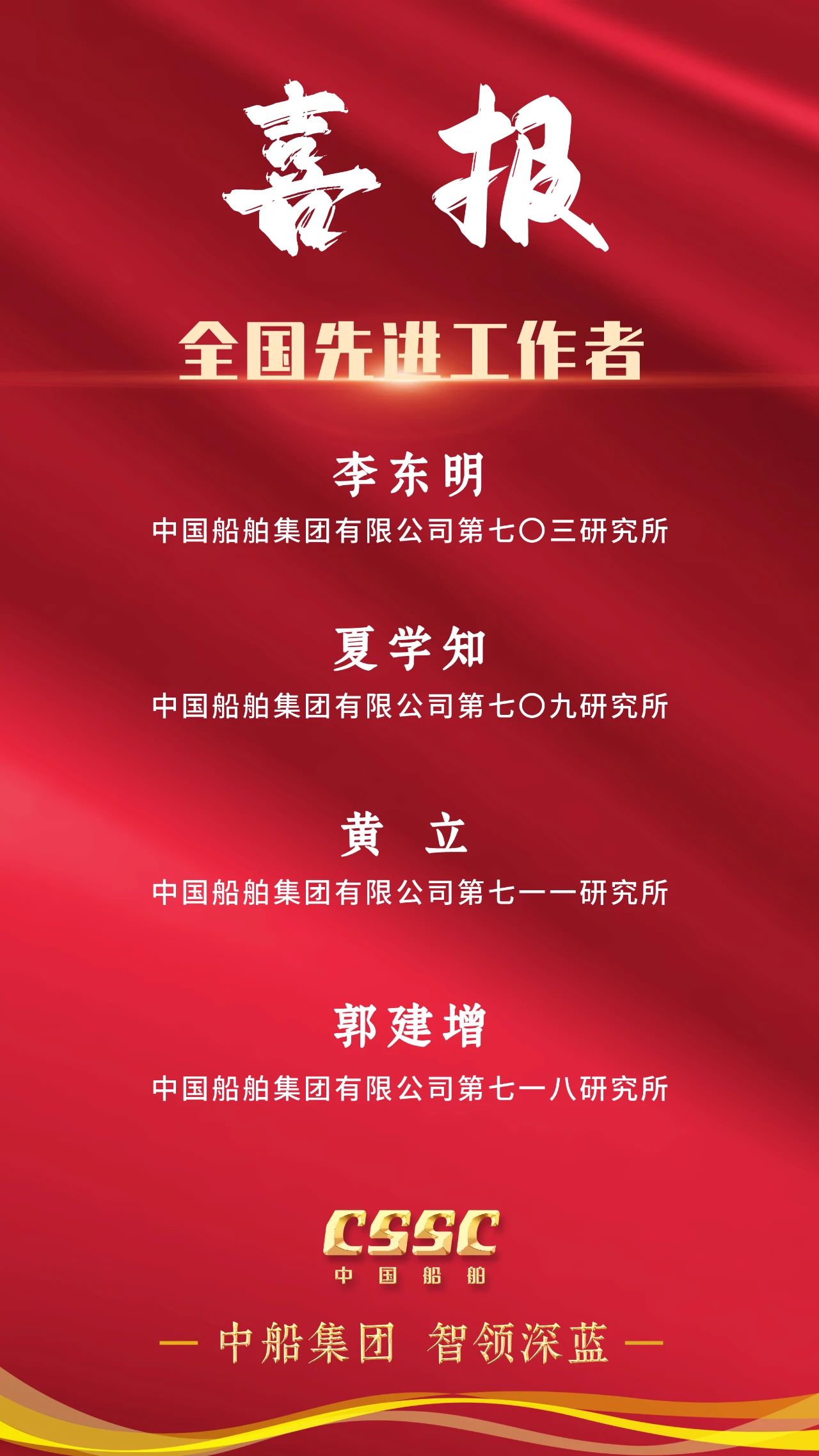 4月28日上午,庆祝中华全国总工会成立100周年暨全国劳动模范和先进工作者表彰大会在人民大会堂隆重举行。大会宣读了《中共中央、国务院关于表彰全国劳动模范和先进工作者的决定》。中船集团5人被授予全国劳动模范称号,4人被授予全国先进工作者称号。