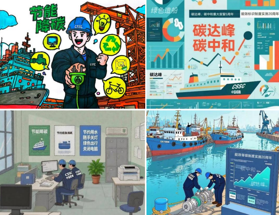 渤海造船围绕我国宣布碳达峰碳中和目标5周年、能效标识制度实施20周年等关键节点,聚焦节能降碳工作重点,在全公司范围内开展了一场别开生面的美术作品征集活动。活动共收到来自不同部门、不同岗位报送的百余份美术作品。作品不仅内容生动形象、新颖独特,更以艺术的感染力激发了全体员工对节能降碳工作的关注与热情,充分体现了渤海造船深厚的节能文化底蕴和鲜明的船舶行业特色,全方位展现了渤海造船在绿色发展道路上的坚定决心与卓越成果。