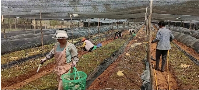 在这充满希望的季节里,鹤庆县六合乡松坪村羊肚菌种植基地一垄垄羊肚菌破土而出,头戴独特的褐色“网格帽”,在阳光下闪烁着光芒,为松坪村绘就一幅生机勃勃的致富画卷。