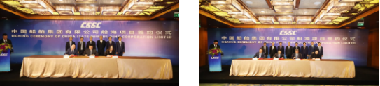 ????主要签约项目包括:中国船舶集团所属重庆川东船舶重工有限责任公司与中远海运(上海)有限公司1.38万吨不锈钢化学品船项目;中国船舶集团所属大连船舶重工集团有限公司与招商轮船VLCC项目;中国船舶集团所属上海外高桥造船有限公司与工银租赁21万吨散货船项目、外高桥造船与EPS公司20.9万吨双燃料散货船项目;中国船舶集团所属江南造船(集团)有限责任公司与太平洋气体公司VLEC项目、江南造船与 SINOGAS86000立方米VLGC项目、江南造船与UECC公司3600车汽车滚装船项目、江南造船与派格达克公司22000方乙烯船项目;中国船舶集团所属广船国际有限公司与斯坦纳公司5万吨甲醇双燃料油船项目、广船国际与EPS公司LNG双燃料苏伊士油船项目、中国船舶集团所属沪东中华造船(集团)有限公司与MOL18600立方LNG加注船项目;中国船舶集团所属武船集团青岛北海船舶重工有限责任公司与中国船舶集团所属中船租赁21万吨散货船项目、中国船舶集团所属中船澄西船舶修造有限公司与国银租赁85000吨散货船项目、重庆川东船舶重工与重庆冠达世纪游轮650客游轮项目;中国船舶租赁与 Golar LNG 船舶改装融资租赁项目、中国船舶租赁与SINOGAS86000立方米VLGC融资租赁项目;中船租赁与山东海运21万吨散货船融资租赁项目、中船租赁与Navig 8 成品油船联合投资协议、中船租赁与新加坡星展银行VLCC融资协议。