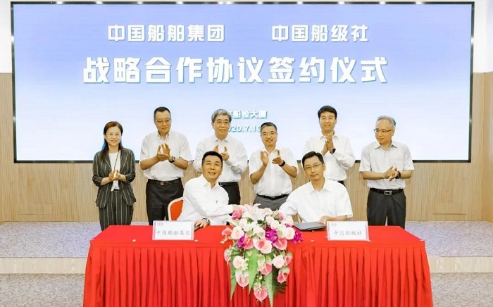 7月10日,中国船舶集团有限公司与中国船级社在京签订战略合作协议。中国船舶集团党组书记、董事长雷凡培,党组成员、副总经理杜刚,中国船级社总裁莫鉴辉,副总裁朱恺、范强出席签约仪式。中国船舶集团党组成员、副总经理孙伟,中国船级社副总裁孙峰分别代表双方在协议上签字。签约后,双方围绕共同服务国家战略,就进一步加强交流合作、促进优势互补、实现共赢发展进行了深入交流。