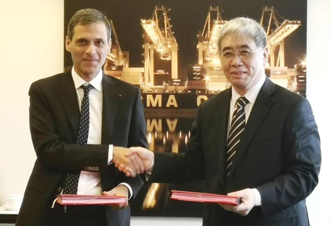 中国船舶集团董事长雷凡培、达飞集团董事长兼首席执行官鲁道夫·萨德互换签约文本