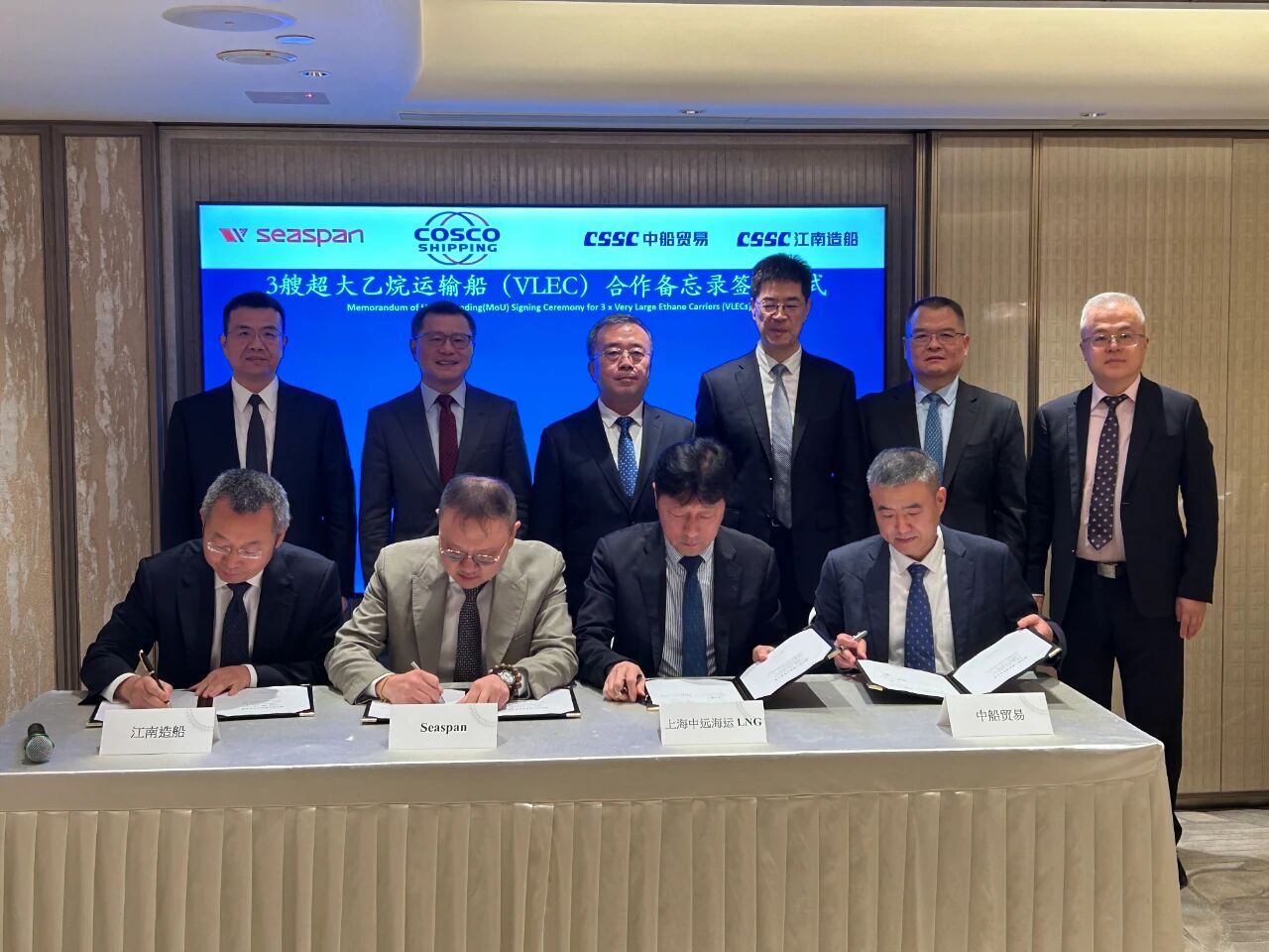 王国强同时见证了中船集团与中旅集团签署战略合作协议,中船集团旗下江南造船联合中船贸易与Seaspan、上海中远海运LNG签署超大乙烷运输船(VLEC)合作备忘录;与相关中央企业举行会谈并签署战略合作协议。