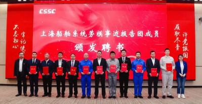 会上播放了《2020年上海船舶系统劳模、先进风采录》视频,为12位劳模事迹巡讲团成员颁发了聘书。按照计划,劳模事迹巡讲团将赴上海船舶系统的企事业单位进行宣讲。