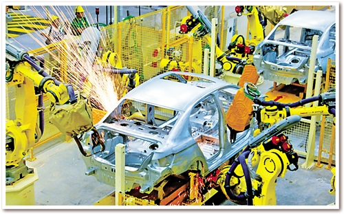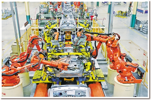 日前,记者在东风汽车公司旗下神龙汽车公司成都工厂焊装车间看到,占地面积约10个足球场的车间俨然就是一个“机器人王国”:442台各种机器人都在忙碌着,所有点焊、弧焊、激光焊、螺柱焊、涂胶、包边、铆接、部件搬运等“重活、累活”全部由机器人自动完成。焊装分厂厂长孙继胜介绍说,除442台机器人外,车间还有另外一个“撒手锏”??六面体转台设备。“原来生产1个车型要建6条生产线,现在1条生产线就可以生产6种车型。”孙继胜说。