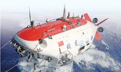 2012年6月15日,蛟龙号载人潜水器进行7000米级海试首次下潜试验。(人民视觉)