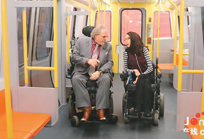 “现在,平生第一次,我不再需要别人帮我进到车厢里了。这种独立性对我来讲至关重要。”马萨诸塞州波士顿地铁老乘客怀特先生坐着轮椅在车厢里溜达了一圈,对地铁新车充满期待。当地时间4月3日,在美国波士顿举行的橙线地铁模型车首次展出活动上,美国民众感受了来自中国的地铁车厢。更宽敞、美观,设计更加人性化,让美国民众为之点赞。“车厢内外侧都有专门的按钮,可以让坐在轮椅里的人在上、下车的时候直接启动车厢底部的专用轮椅车平板,通行完全无障碍。”怀特先生说。