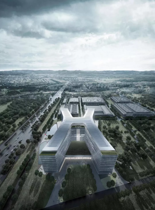????▲ 外立面设计简洁大气,既与务实创新的航天精神相融合,又和园区内其它建筑单体以及外围建筑风格相协调。