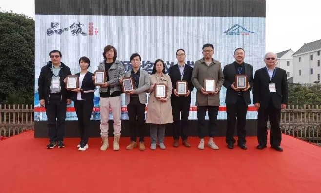 “稻田驿站”设计主创谢高皓(右三)参加一等奖颁奖仪式