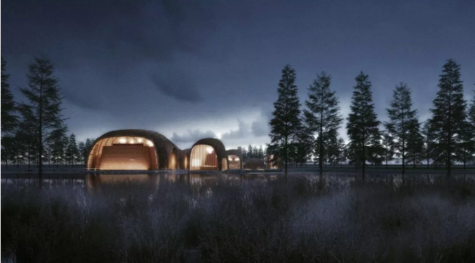 ????“稻田驿站”方案以崇明早期民居“环洞舍”为原型,设计定位区别于村落改造,设计立足稻田之间,追求野趣、朴拙的田园气息,回归原始建造,力求在乡村振兴的大背景下,唤醒人们对田野间的原始记忆。