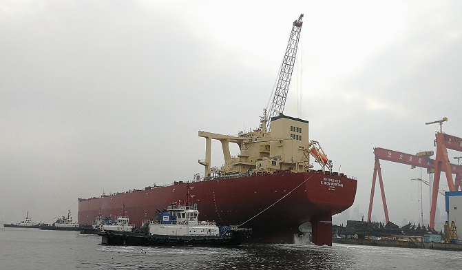 ????3月12日,中国船舶集团所属大船集团为SK海运建造的首制32.5万吨矿砂船8号船起锚试航。这是大船集团首次为韩国船东建造的新一代超大型矿砂船(VLOC),船长约340米,船宽62米,船体型深29.5米,预估平均航速15.1节,续航力25500海里。该船甲板面积与3个标准足球场相当,上层建筑有17层楼高;在分舱、结构、推进、监测、装载等方面进行了全面升级。全船压载系统管系采用玻璃钢材质,配置有排气硫氧化物洗涤装置,着眼未来需求设有液化天然气燃料预留舱,“环保、节能、安全、坚固”,亮点突出,总体性能达到世界领先水平。计划将在4月中下旬交付船东运营。