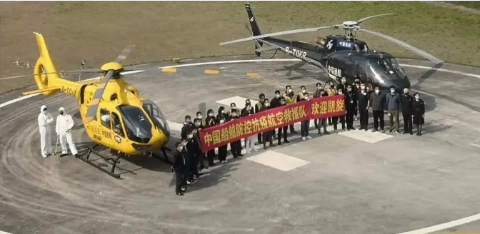 ????3月18日,随着两架直升机缓缓降落在上海金桥直升机基地,中国船舶防控抗疫航空救援队在圆满完成湖北抗疫任务后凯旋!2月5日,在中国船舶集团系统工程院的统一部署下,海丰通航与中瑞通航组成中国船舶防控抗疫航空救援队,先后投入三架直升机,赴武汉、温州,辗转仙桃、宜昌、黄冈等地,历时四十天,飞行近百小时,转运抗疫急救物资十多万件,充分发挥了直升机灵活、高效的优势,成为防控抗疫行动中重要的空中力量。