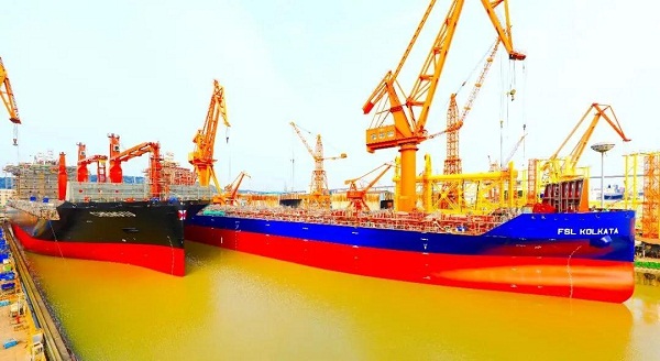 ????4月10日,中国船舶集团旗下黄埔文冲为希腊COSMOSHOP公司建造的1500TEU.GO集装箱船4号船H5655船以及为新加坡太古公司建造的2350TEU.C集装箱船4号船H5529船