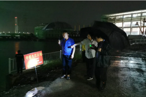 中船九江公司接到九江市防汛指挥所通知后,第一时间连夜组织应急分队投入防汛抗洪战斗,安排公司及所属各单位人员在九江市八里湖新开河西堤、彭泽芙蓉墩镇芙蓉村下芳湖内堤、定点扶贫点柴桑江洲6号村等责任段进行24小时值班值守。