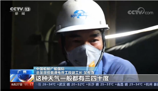 8月份正是广州高温天气最为密集的一个月,在烈日的炙烤下,管节的钢板被晒得滚烫。为了减少焊缝接头,避免产生焊接缺陷,焊接工人常常保持一个姿势一焊就是大半个小时。