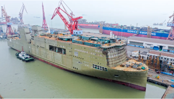 全船共26个总段中23个总段的总组和13个总段的涂装。这艘船完成了所有上建外板的一度油漆和窗户涂装,升降台、斜坡水密门、斜坡盖板等均已完成安装发电机完成安装报验,多个系统完成调试报验