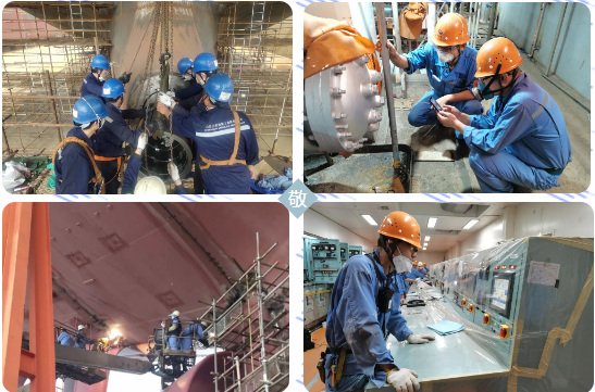????船坞三部在建的15万吨原油船6号船正在进行主机基座吊装、轴舵系设备安装,管路、铁舾件焊接等项目施工;15万吨原油船5号船正在进行主楼电器设备安装、泵舱压载管系磅压等设备系泊调试工作。