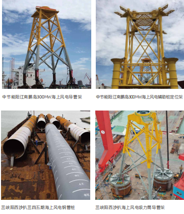 海上基础类风电产品包括海上风电导管架、辅助桩定位架、稳桩平台、钢管桩、吸力筒导管架、风电单桩等。