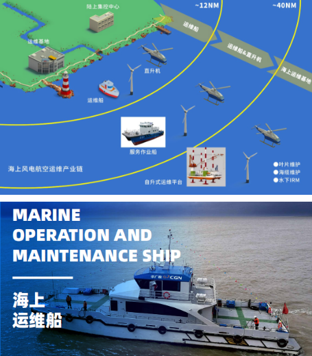海上运维包括海上风电运维航空保障,海上风电直升机运维和无人机物流作业服务,海上风电作业安全培训等方面。