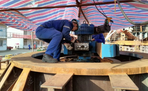 ????武船集团高质量完成了基座上船焊接前粗镗孔工作,外径φ3400毫米、内径φ2670毫米的基座内孔和上平面加工一次成型,报检一次合格,受到质检部门及船东的一致好评,被评为“优等品”。