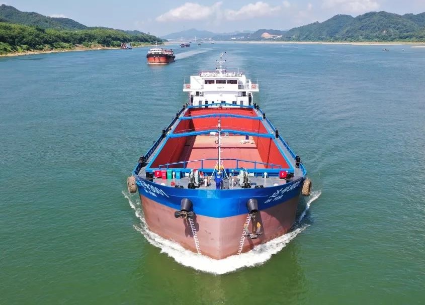 “绿色珠江”工程LNG单一燃料动力船舶两型首制船——3000载重吨散货船“达峰3001”号、2000载重吨散货船“中和2001”号,由中国船舶集团旗下广州船院设计、中船广西建造,于今年11月2日交付并投入运营。
