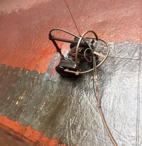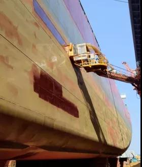 2020年,公司在水雾喷砂基础上引进了8套超高压水除锈设备,并通过引进技术自主研发爬壁机器人,进一步压减修船除锈粉尘的产生量,从根源上解决了船舶除锈带来的扬尘问题。